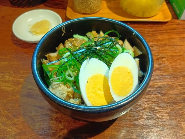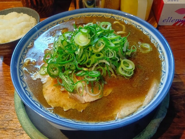 魚粉特有のザラツキはあるものの、サオタン製法で仕上げた透きとんこつと小豆島ヤマロク醤油に魚介の旨味風味がしっかり主張加えたオリジナルな魚介豚骨。