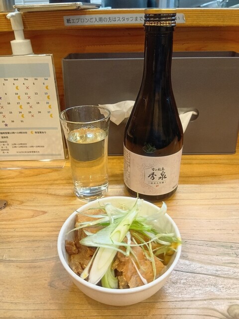 冷酒・賀茂鶴一滴入魂と肩ロース炙りチャーシュートッピング