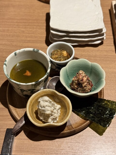 女将の逸品盛り合わせから始まる[おまかせフルコース(4,950円)]は、鳥への思い・焼鳥への本気度が最初の逸品から伝わってくる。