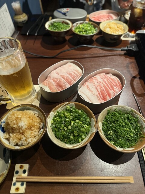 しゃぶしゃぶしたアグー豚に薬味をたっぷり絡めて食べると…まじで美味い。