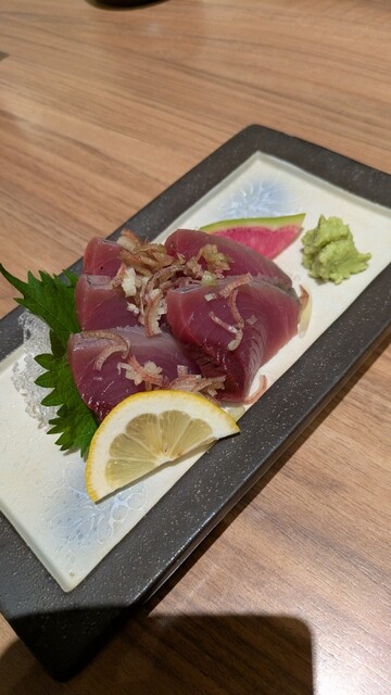 ホールスタッフからオススメされたのは水揚げされたばかりのかつお刺身(気仙沼産)とがぜうに(気仙沼産)、両方ともたべましたよ、、まぁとろけましたよ。赤身には赤ワイン(チリ)血液までグルタミン酸が行き渡りました。