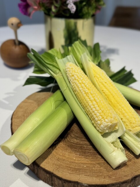 デザートは本物のとうもろこしのようで遊び心もあり