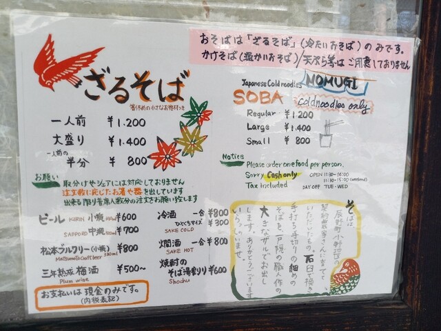 可愛いスケッチと共に、器、ザル、山葵、大根まで誰が作ったか、どこが産地か書かれて、こだわりが伝わります。