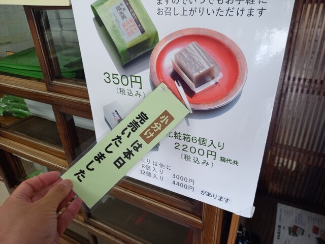 14時だったので小分けタイプの塩羊羮は完売してたので、宅配便でも注文。2週間もつので、お土産に。ひとつ350円。6個入り2200円です。