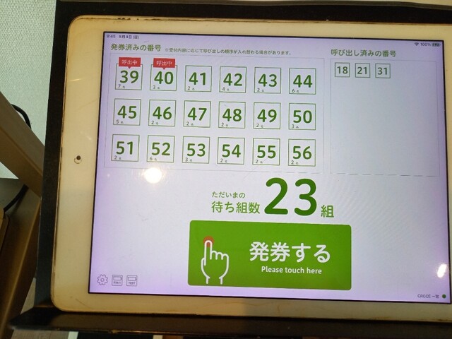 45分ほど滞在しまして、帰る頃には呼び出し40組目、23組待ち。63組予約され、画面に収まらない状況でした。