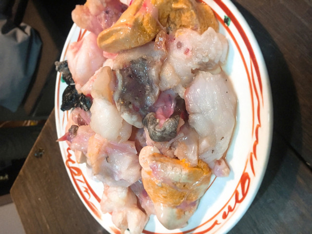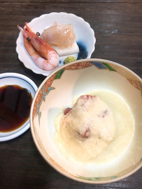 あん肝、フグの煮こごり、山椒の佃煮、押し寿司、茶碗蒸し、お刺身盛り、マグロの山かけ、煮物、鮟鱇鍋。