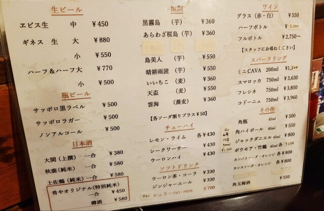 肉・魚・野菜のすべての肴は、煮る焼く蒸す漬ける等、すべてがエエ塩梅に料理されて完ぺきやし、GUINNESS含めた酒のすべても味や濃さ飲み方等こちらもちょうどええ感じやし、、なに食べても、なに飲んでも、コスパが良くて、美味しくて、なんでもこいの、ホンマにすべてにおいて良過ぎるお店です~♪