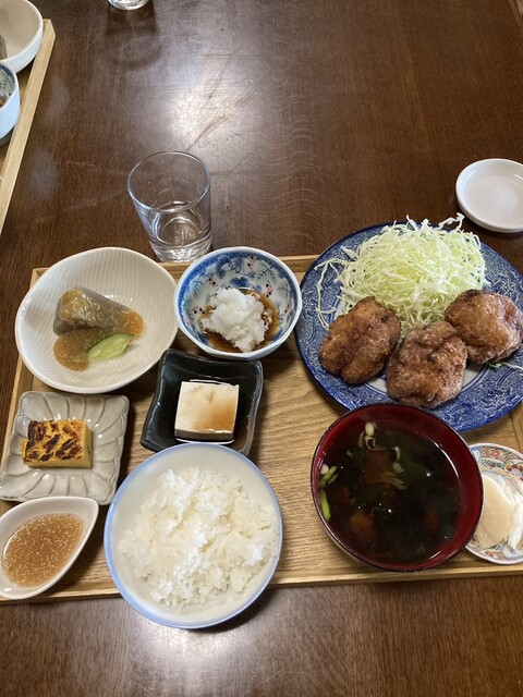 そして、待望の唐揚げ。まず見た目が丸い。なぜ丸いの?不思議に思いつつ、箸で持ちあげると、ふわふわな感じが伝わる。ひとくち食べると、ジューシーを通り越してとろんとろんの食感と鶏肉の旨味が口の中を満たしてくれます。食感の不思議さを感じながらも、味の染み込んだ唐揚げに、ごはんが止まらない。半分食べてから、おろしポン酢を唐揚げに乗せてほおばる。ん〜うまい。大根はみずみずしく、嫌な辛味がなくほんのり甘味も感じられ美味しい。ポン酢との相性もよく美味しくいただけました。すでに幸せです。