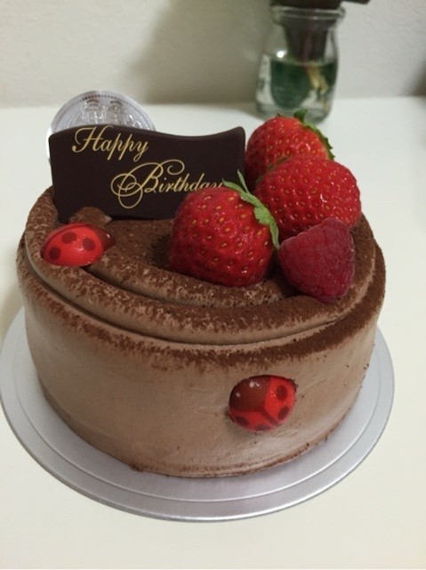 まずは後ろにラインで、デザートを2種類・・・最後のデザートには、頼んでいた「happybirthday」の文字が。