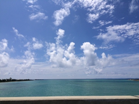 荷物を預けに向かう道にて、The沖縄という海の眺めがこんにちは!