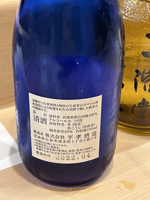 ムーディーに乗っかって日本酒をお願いすると、さりげなく黒龍酒造220周年記念ボトルが登場し、大将のお目の高さに感服です。