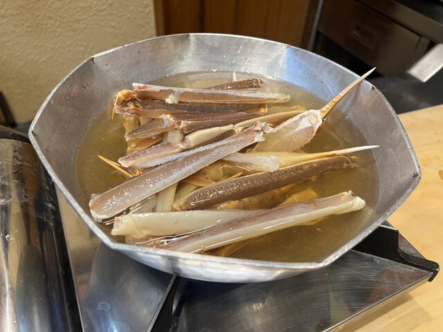 兵庫県香住産せいこがに、蟹の甲羅と殻を煮詰めてたソース掛け