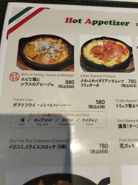 ロッシーニ3,850円.俺のアヒージョ968円.俺のBakeryバゲット110円を注文。