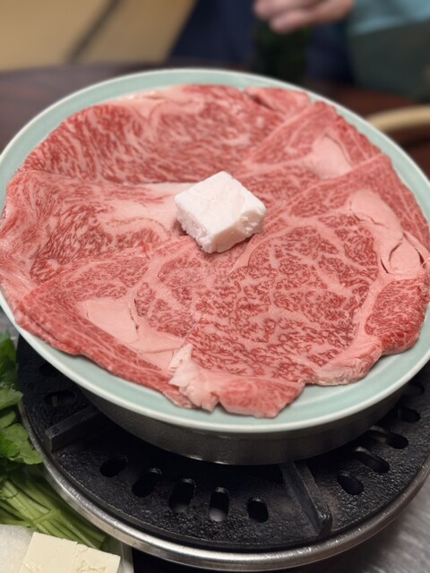 当日仕入れの最高級の松阪牛をすき焼きと汐ちりで。