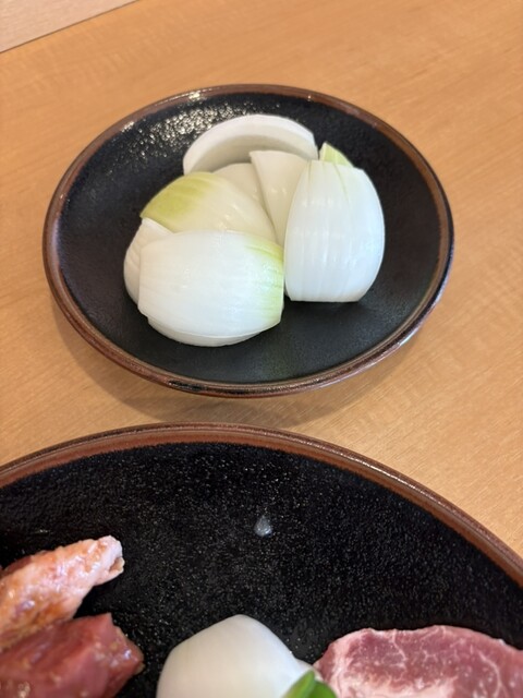 「かみふらのポーク定食」(豚サガリ ホルモン 地養豚) ¥1.380にライス「中」、「シーザーサラダ ハーフ」¥530と「たまねぎ」¥250注文。