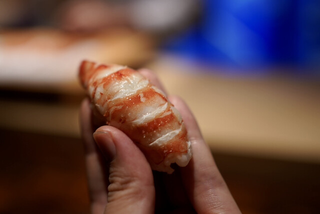 →江戸前寿司の花形ともいえる車海老!身はしっとりとしながらも弾力を失わず、まさに熟練の技が詰まった一貫に感服!