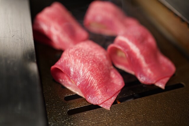 最大の魅力はフルアテンド焼肉。席ごとに専属スタッフが付き、肉はすべてベストな火入れで提供。自分で焼かなくていいって、こんなに贅沢なんだ…と実感します。名物「たたみネギたん塩」は、うるツヤの上質タンにたっぷりのネギを重ねて蒸し焼きに。噛んだ瞬間、ネギの甘みとタンの旨みが溶け合って、思わず無言に。