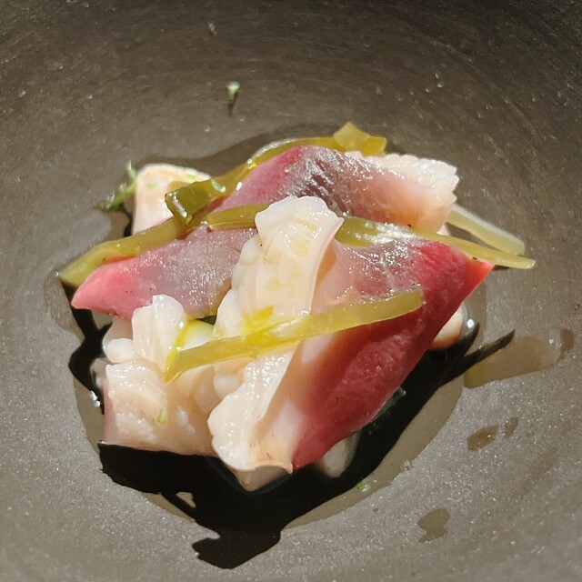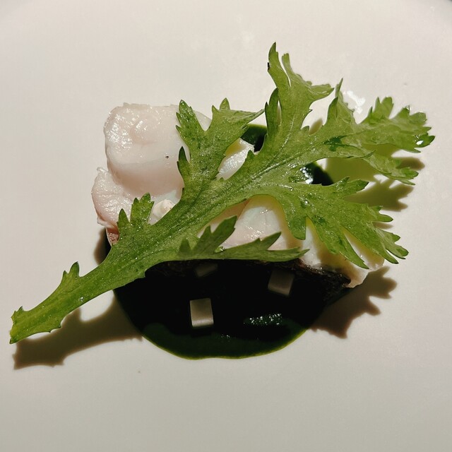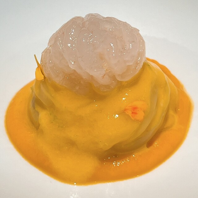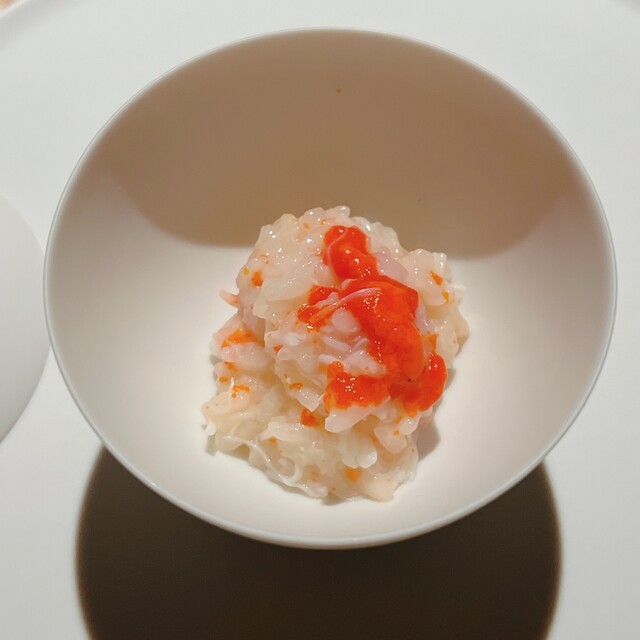 やはり、ずっとコースの最初の一皿を担っているインパクト甘エビは、今日も始まるなあとコースのスタートを感じる一皿。