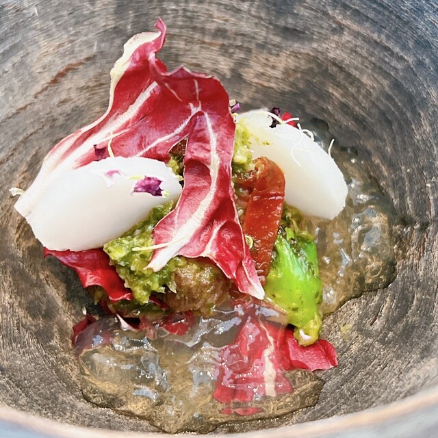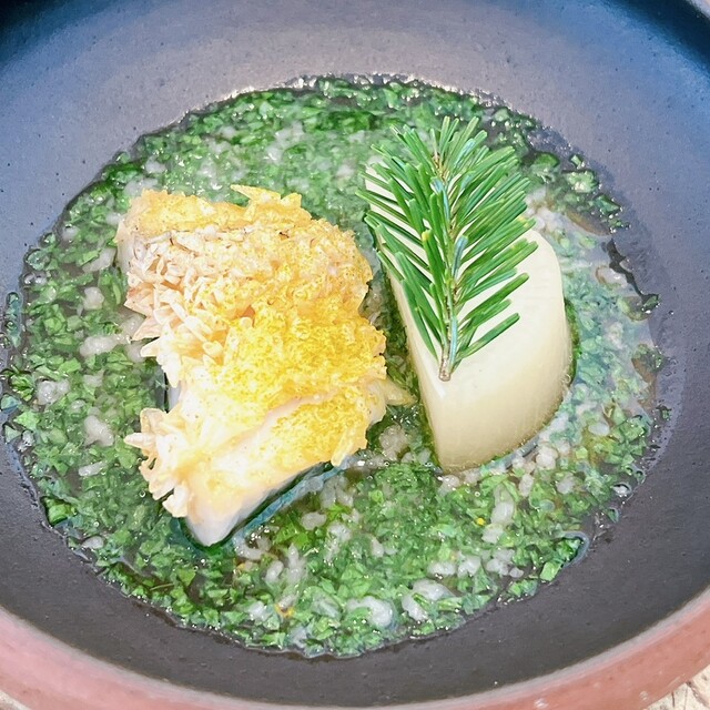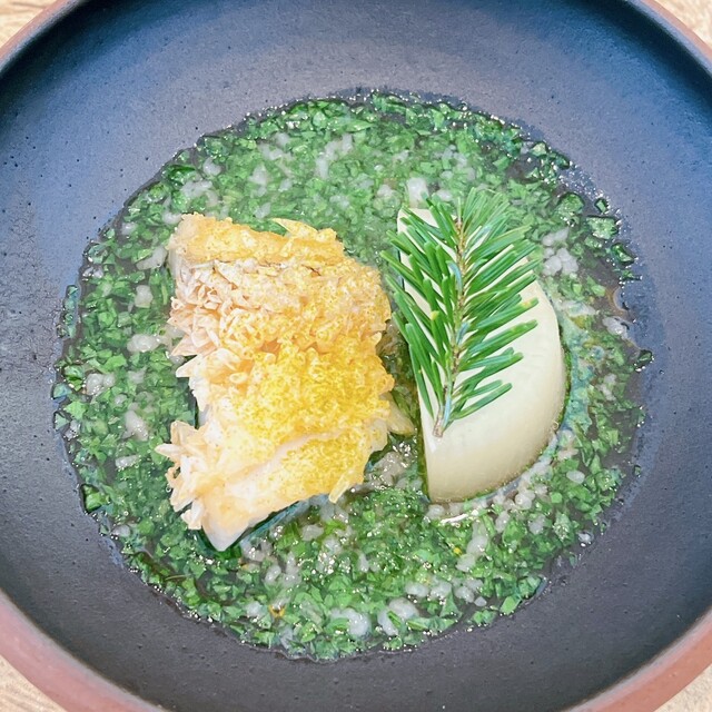 全てがパーフェクトで好きなのですが、今回書籍を発刊し、表紙にもなっているこちらの鱧の一皿は、まさに芸術で、美しく美味しいお料理。