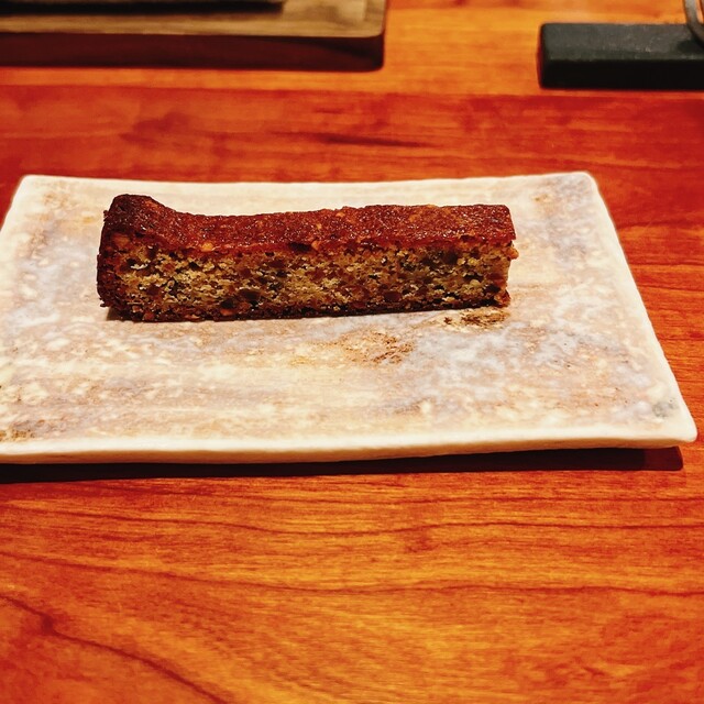 このお料理に鈴木シェフの料理への探究心が詰まっているように感じた。まずズッキーニを丸こげにし1本1本ズッキーニの汁を搾り出し、水不使用でその搾り汁のみでご飯を炊いている。どうしたらそのようなことを思いつくのか、、きっといろいろ試したことは想像つくし、見た目以上に手間暇をかけた料理はズッキーニの風味をダイレクトに感じ、雲丹の味と合わさり感涙ものでした。