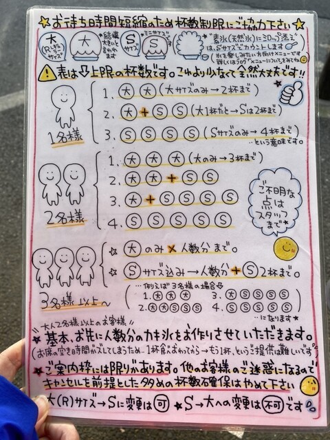 整理券を受け取る時に人数と食べる杯数を伝える必要があります。