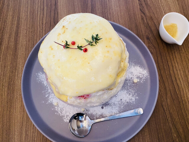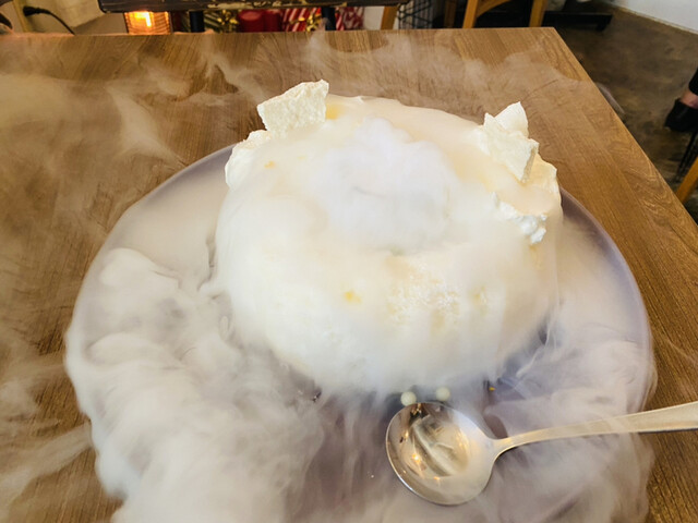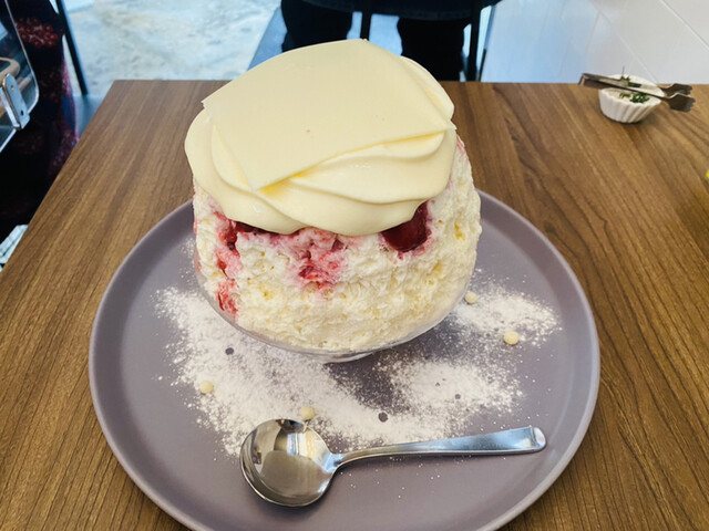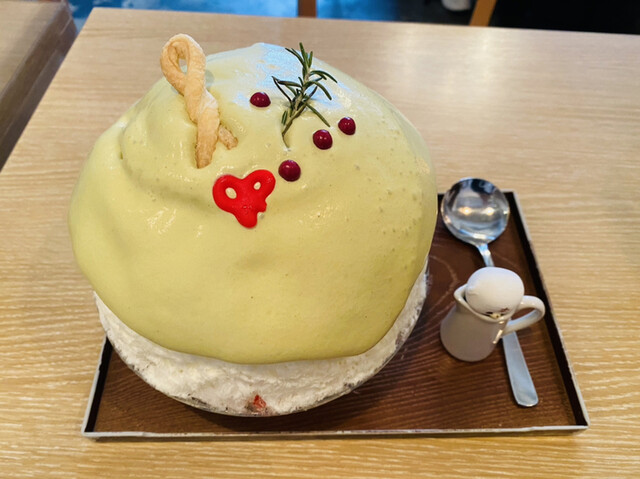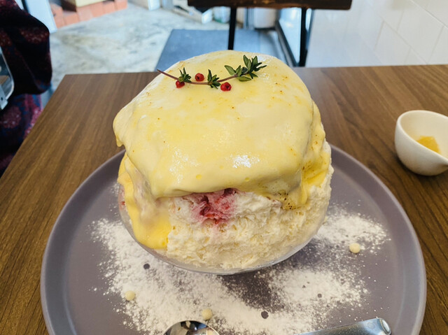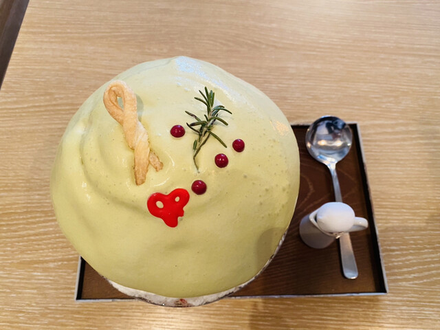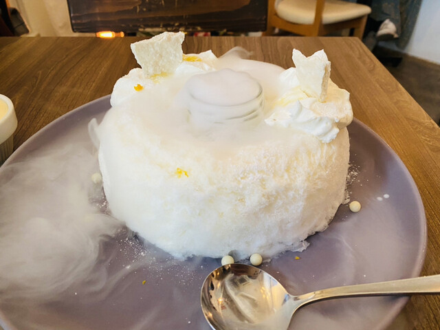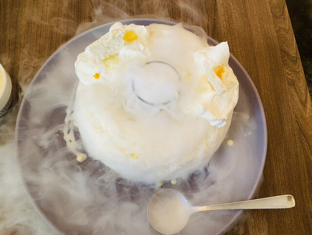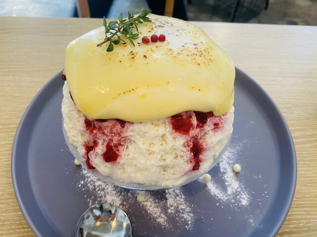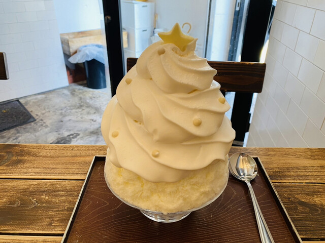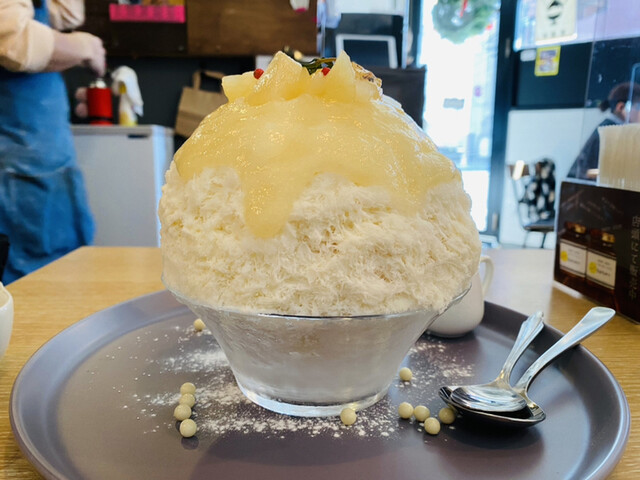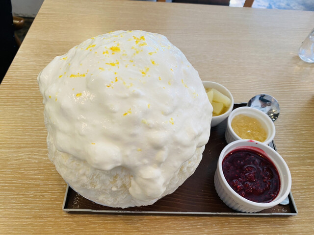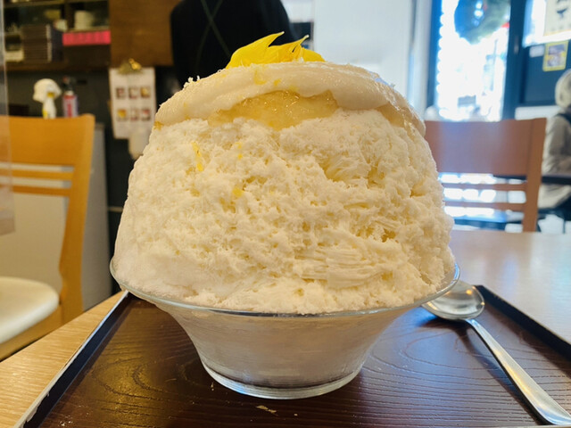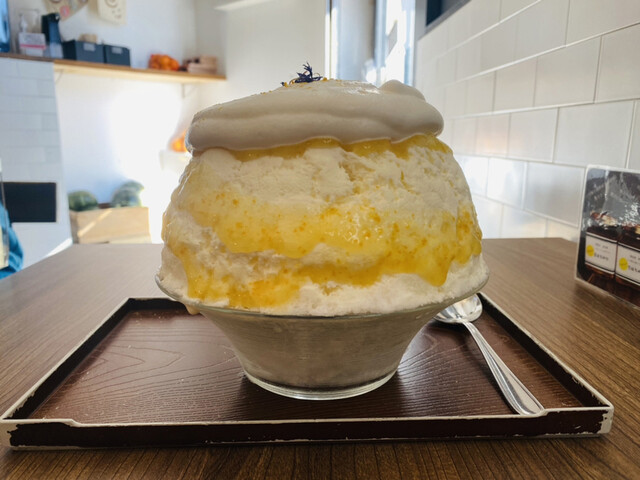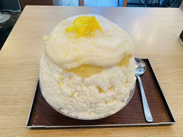 今日の氷はいつものふわふわよりもしっとりしていて不思議な美味しさでした♪ゆず柑橘が重めだからかな?