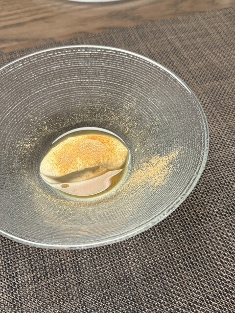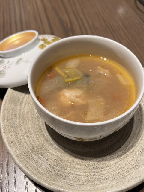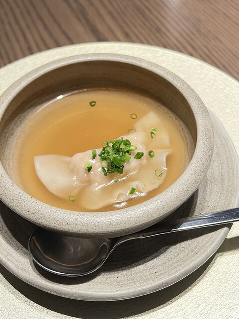 まずは「月見水餃子 香る上湯スープ仕立て」からスタート。