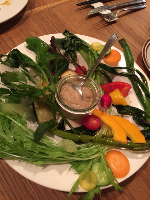 私はここの有機野菜のバーニャカウダが大好きで、必ずいただきます。