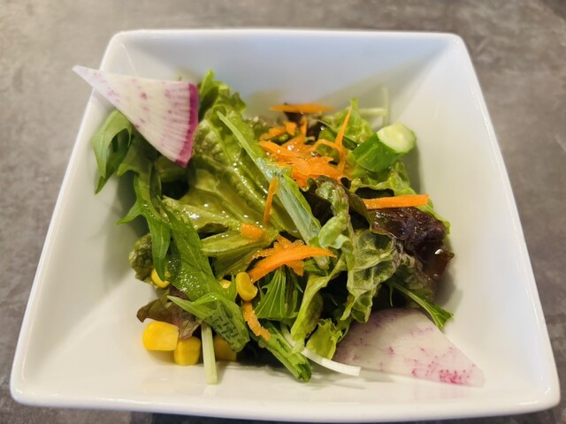最初にサラダ、次にフォッカッチャが提供されました。野菜が新鮮でドレッシングの味も良かったです。フォッカッチャがとても美味しかったので、聞いたら、お店で作っているとのことで納得の味でした。