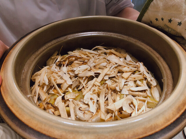 土鍋の松茸ご飯(2合のところ4合。追加料金4,800円)