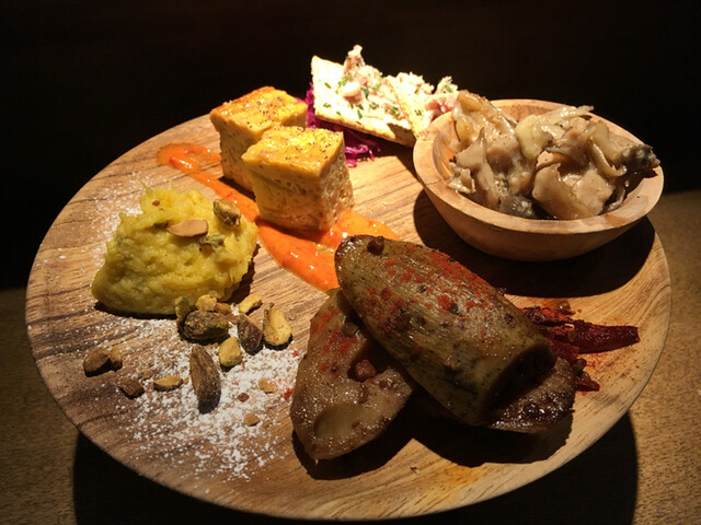 内容は うろ覚えですが「安納芋のペースト」「フリッタータ」「紫キャベツの酢漬け&ツナ」「キノコと軟骨のマリネ」「蓮根の金平」だったと思います