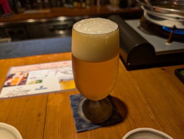 瓶とコップだけ渡されるのかと思いきや注いでくれたんだけど、スポットライトのような光が店員さんの手元をひからせてて、なんかそれがより綺麗に見えてちょっと感動しました笑