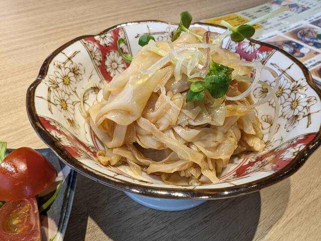 今回は昼飲みでの利用。ドリンクはサッポロ黒ラベル(キンキン!)に始まり、赤星の大瓶、抹茶焼酎まで。サーバーの管理がしっかりされていて、生ビールのクオリティは特筆もの。伺った日は初夏の陽気で、より一層美味しく感じました。
