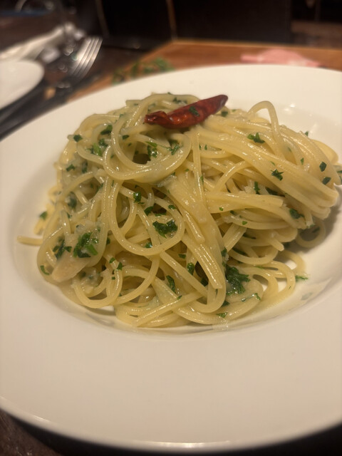 生ハム盛り合わせは豪華。間違いなくワインに合う。最後の大葉のペペロンチーノはおかわりしたい逸品。ご馳走様でした。