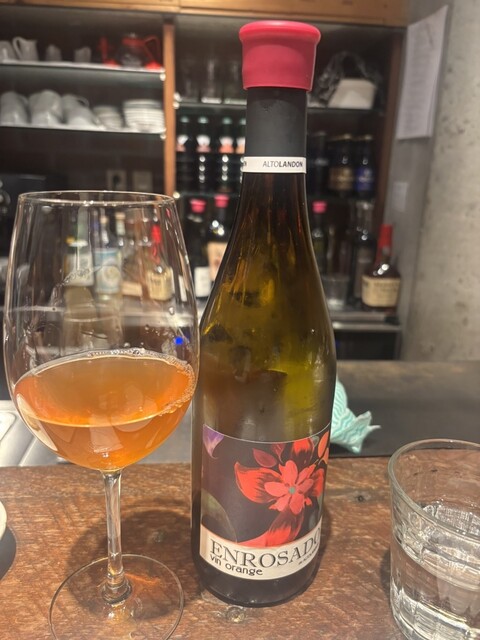 白ワインをメインに数杯、グラスで。オレンジワインもいただく。クセは強くなく飲みやすい。
