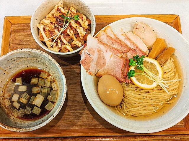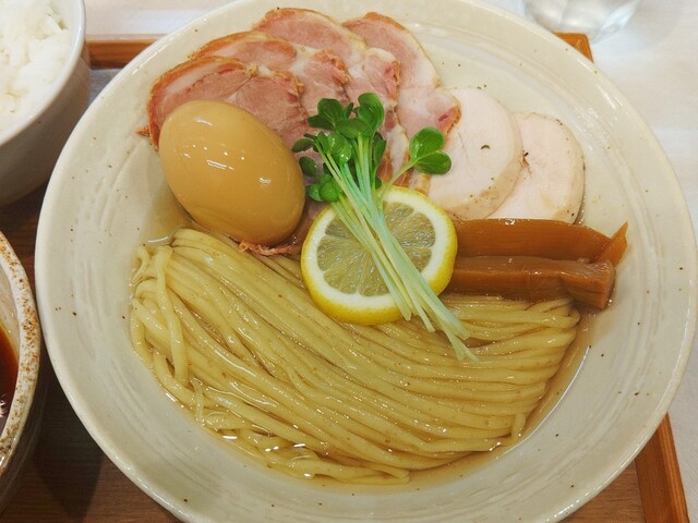 〆は割りスープでお茶漬風に 特製昆布水つけ麺