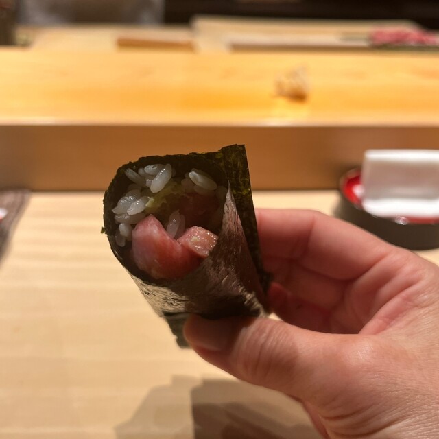 つまみの赤貝でスタート 最高の塩梅で仕上げるこま田さんってやっぱり素晴らしい方です。 つまみも握りも全て美味しかったですが、1つ挙げるとすれば特に赤貝は色合いも厚みも香りもシャリと絡み合う感じも最高でした。(友人の表現を拝借w) また珍しく赤身は封印したマグロもとろっとろに溶けて全員が唸るほどの旨みでした。
