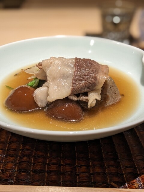 【牛肉の肩とバラしゃぶしゃぶ。花山椒 、下仁田こんにゃく】