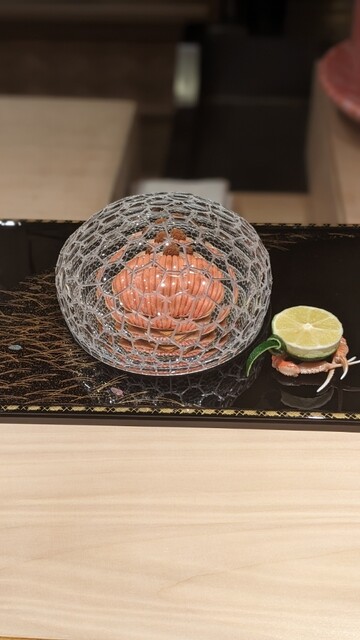 【蟹35度くらい。卵黄。紹興酒タレ】