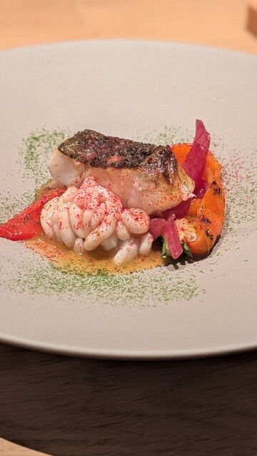 【ヒラメ、万願寺唐辛子、白子、玉ねぎアチャール】