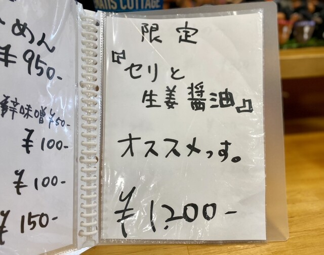 限定 セリと生姜醤油 1200円 味付玉子 100円