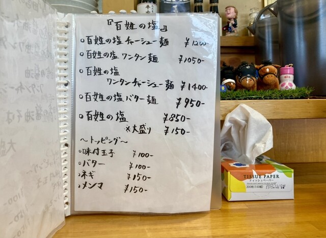 百姓の塩ワンタン麺 1050円 味玉 100円