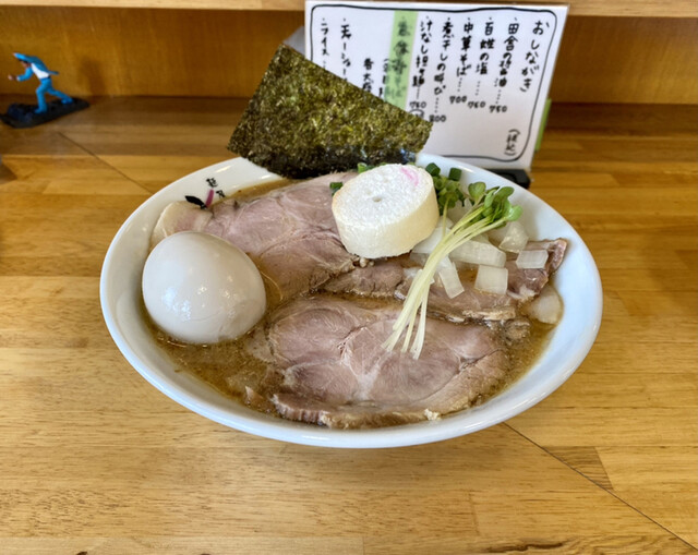 田舎の醤油 750円 手揉み平ちぢれ麺 50円 味玉 100円