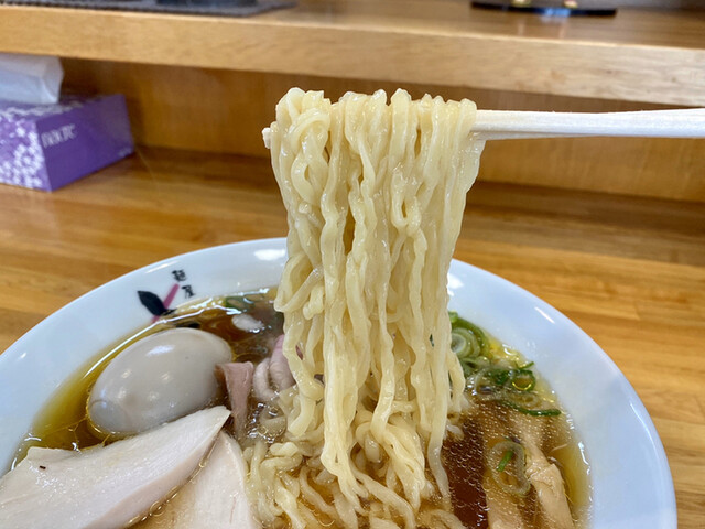 田舎の醤油 手揉み平ちぢれ麺 味玉