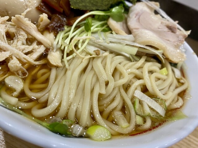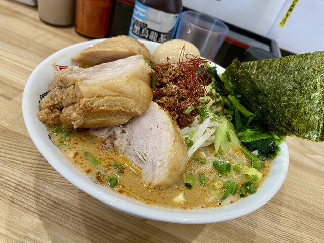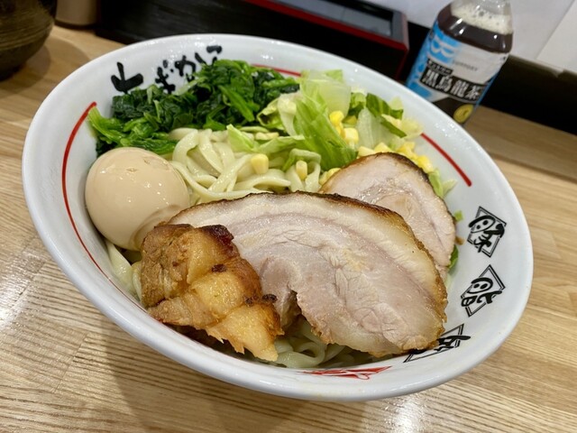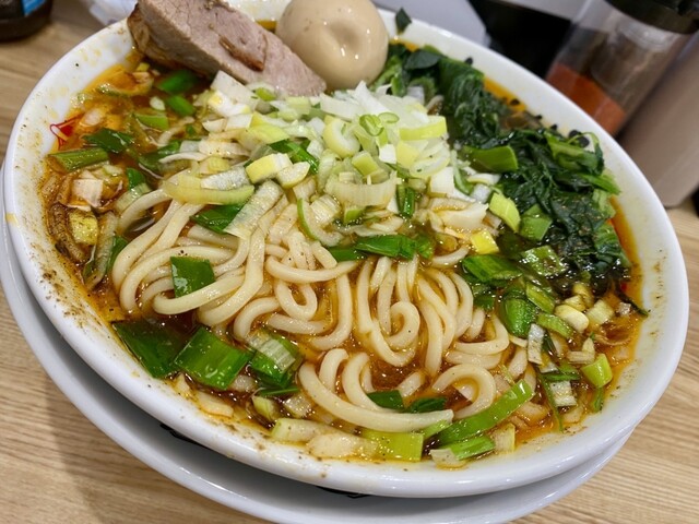 (麺柔め 野菜無し ネギ ちょい辣油)