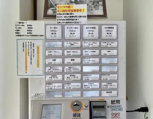 豚券 300円 節券 50円 レン草 100円 味玉 100円 のり 100円