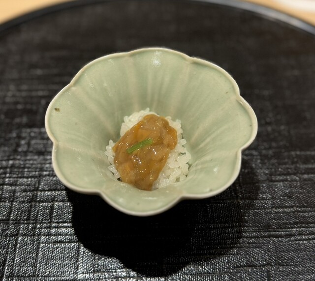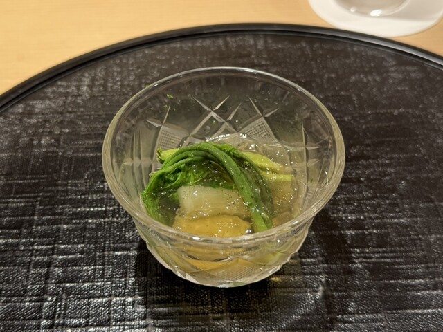山菜取りの名人が取ったじゅんさいと鮑の酢橘ポン酢