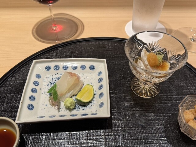 5種の炊き合わせ 鮑,姫竹,そら豆,小芋と海老だったかな?