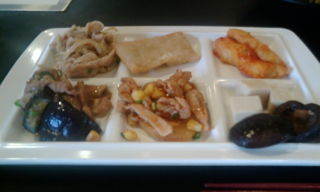 11時半を過ぎると、それまで出ていなかった惣菜が(空になった皿と交換するのではなく)新規に追加されるようになり、前回訪問時に見かけなかった回鍋肉やら栗豚チャーハンも。