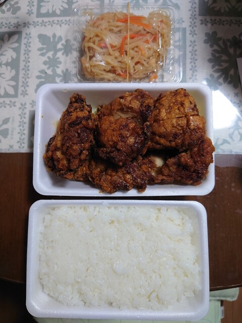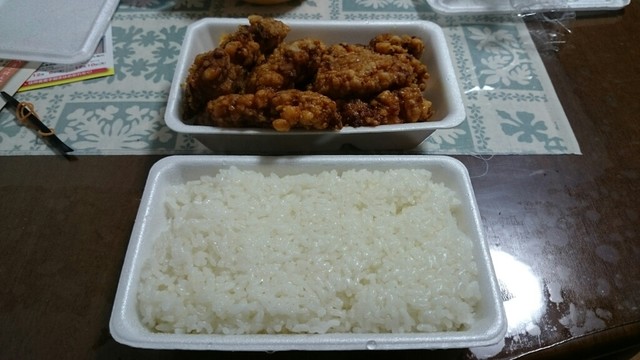 自分せんざんき定食がっつりと愛媛じゃこ天、友人はせんざんき定食小と愛媛じゃこ天をオーダー。